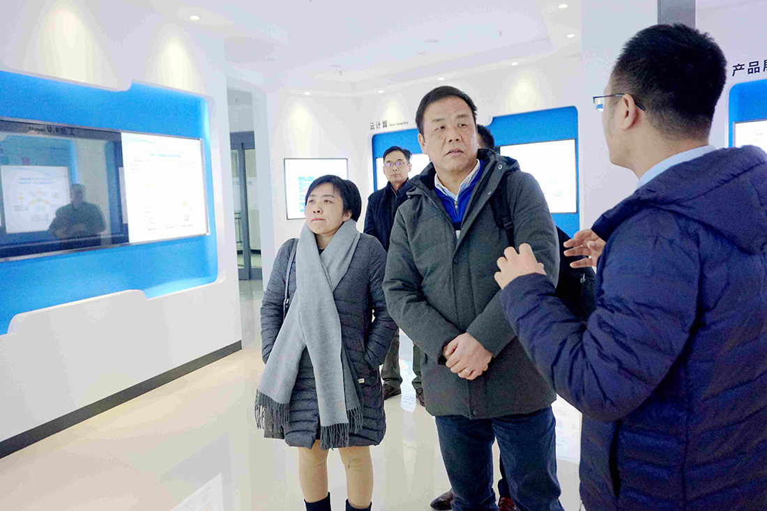 在金佳園展廳,蔡建國一行聽取了公司主營業(yè)務及發(fā)展規(guī)劃的介紹,并詳細了解了公司在云計算、工業(yè)4.0、信息安全、物聯(lián)網(wǎng)與人工智能、智慧城市六大領域的業(yè)務及產(chǎn)品情況。